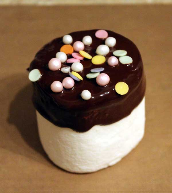 これは簡単ダークチョコかけて砂糖でできたデコレーション付けるだけ。