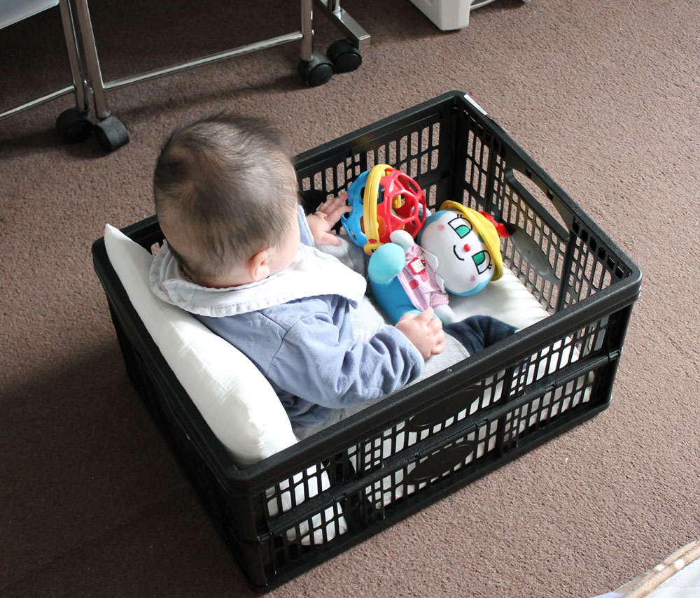 かごに入れれられてるのがスーさんです。6か月ですでにこの哀愁漂う背中。