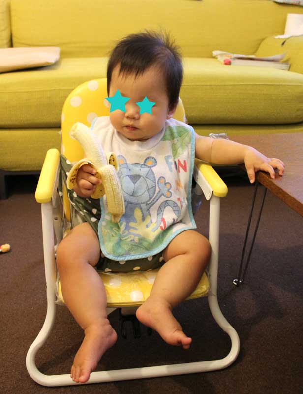 これで、どんなイスも平気。お出かけの時も持っていけばベビーチェア無くてもだいじょぶ。