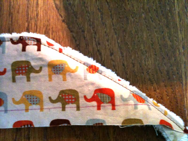 縫えたら余分な裏布を切って、カーブに切り込み、表に返して軽くアイロン。