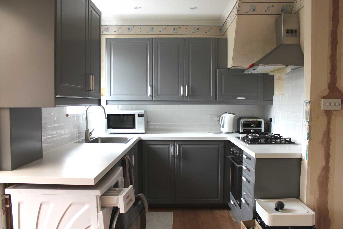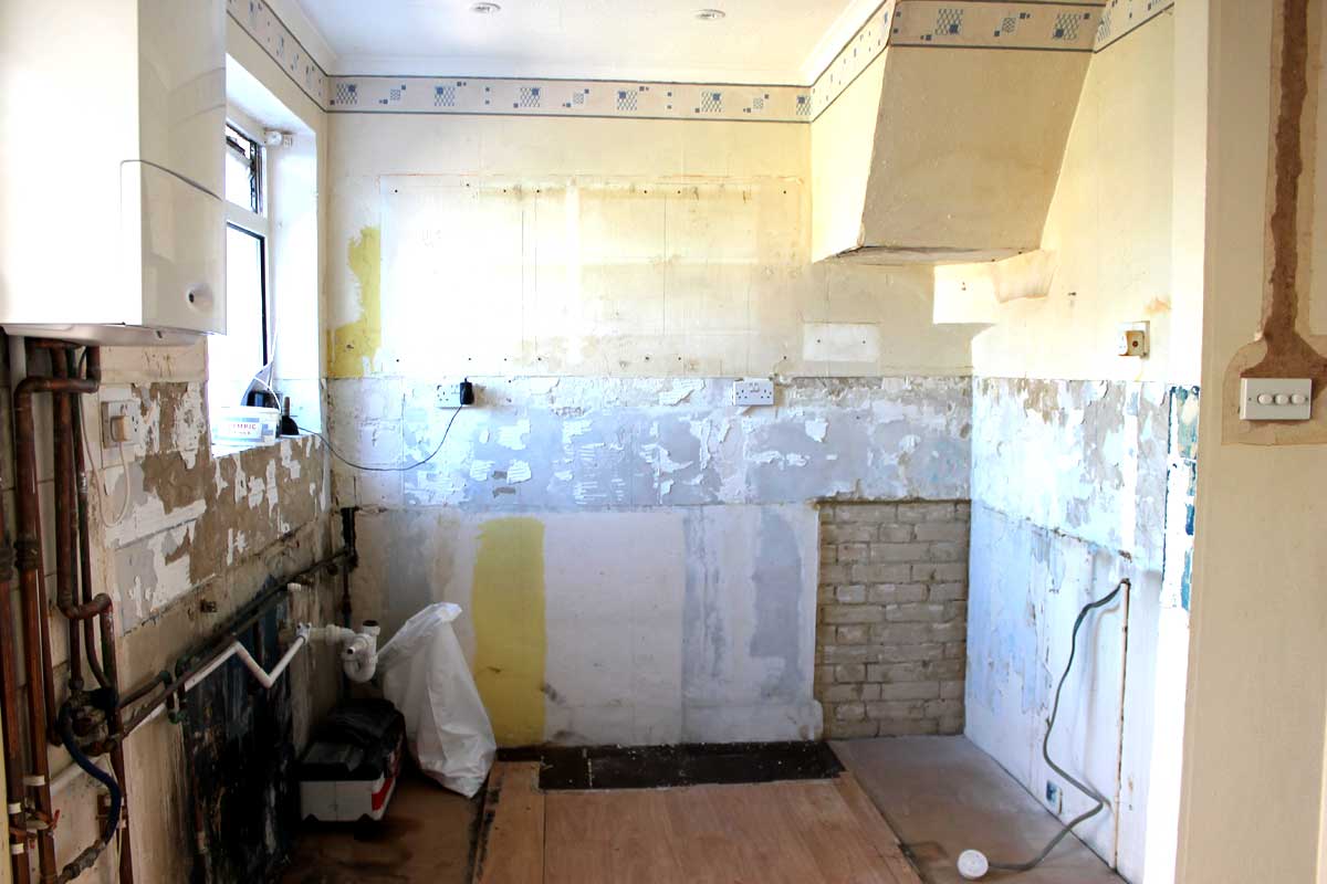 計測なんかは自分でして5月には大手のB&Q(全部込みで8000ポンド)やHomebase(全部込みで10,000ポンド)なんかに見積もりとデザインを起こしてもらうのは済んでたんだけど、比較したりするのに1か月。そしてIKEAに決めたけどワークトップがオーダーメイドの長さになる事になって通常よりも長い時間待つことに、それにIKEAが提携している改装業者の予定などもありキッチンの工事は7月14日から5日間の予定でスタート。