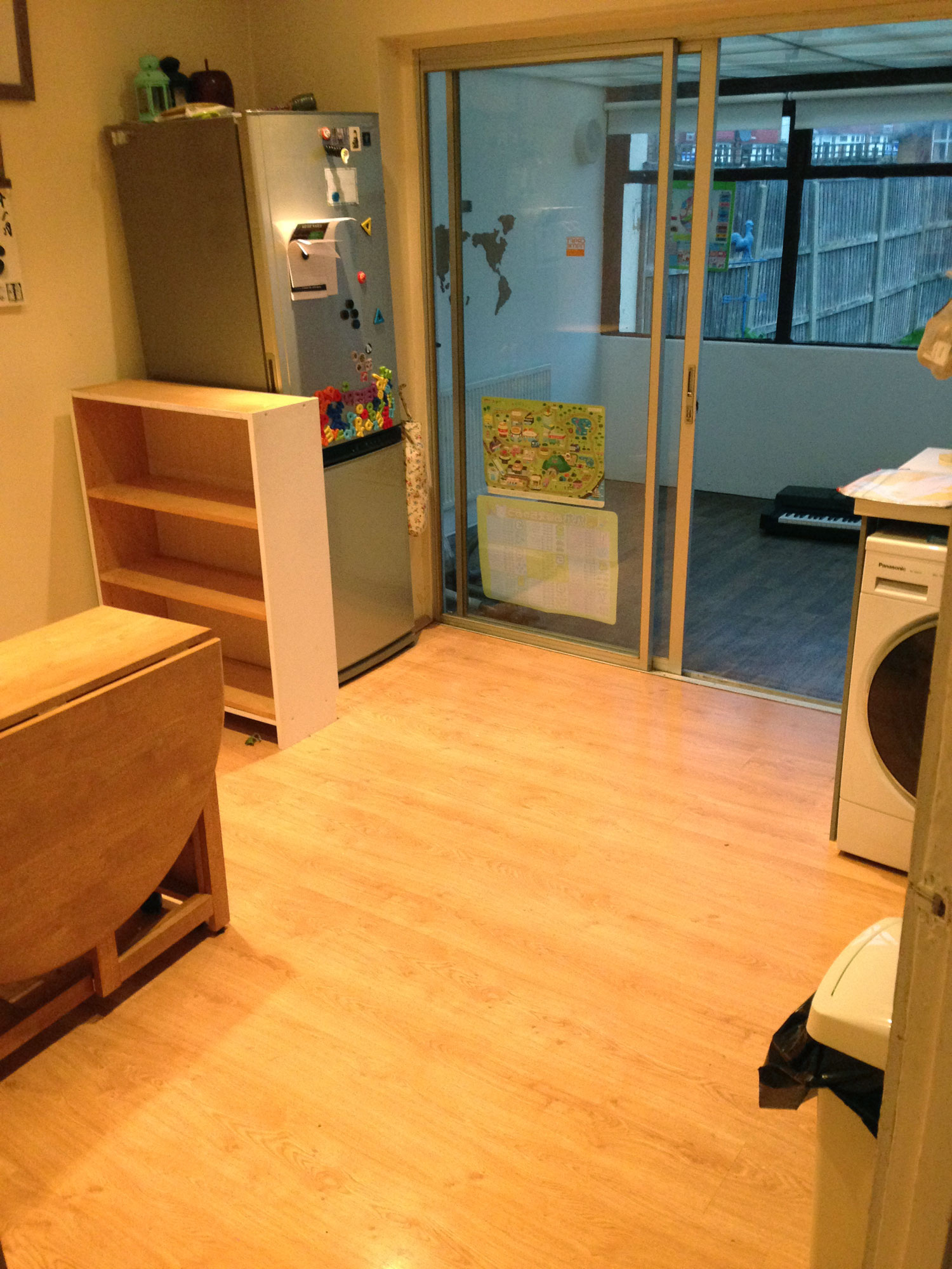 てなわけでラミネートのプリント部分が端から浮いてきてるし年季も入ってるので代えることにしました。ついでにコンサバトリーのボロボロのビニール床も変更決定。