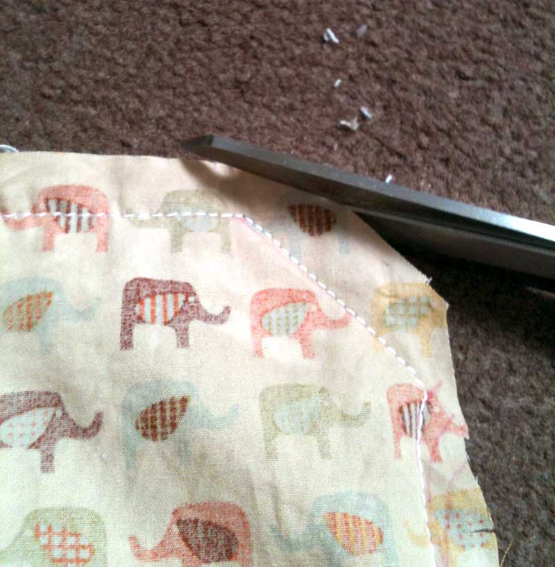 生地が分厚い場合は角になる部分を縫い糸を切らないように切り落とします。