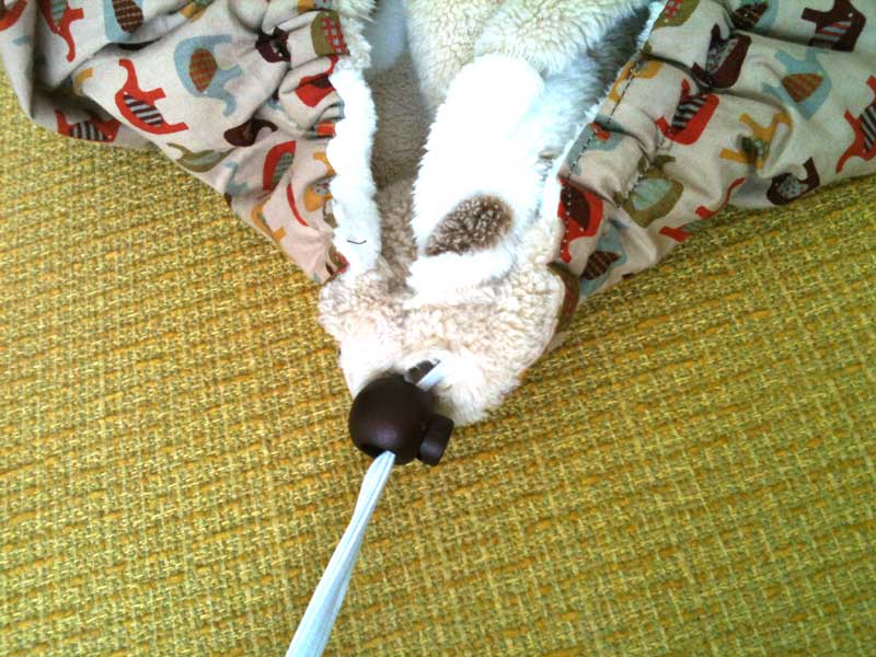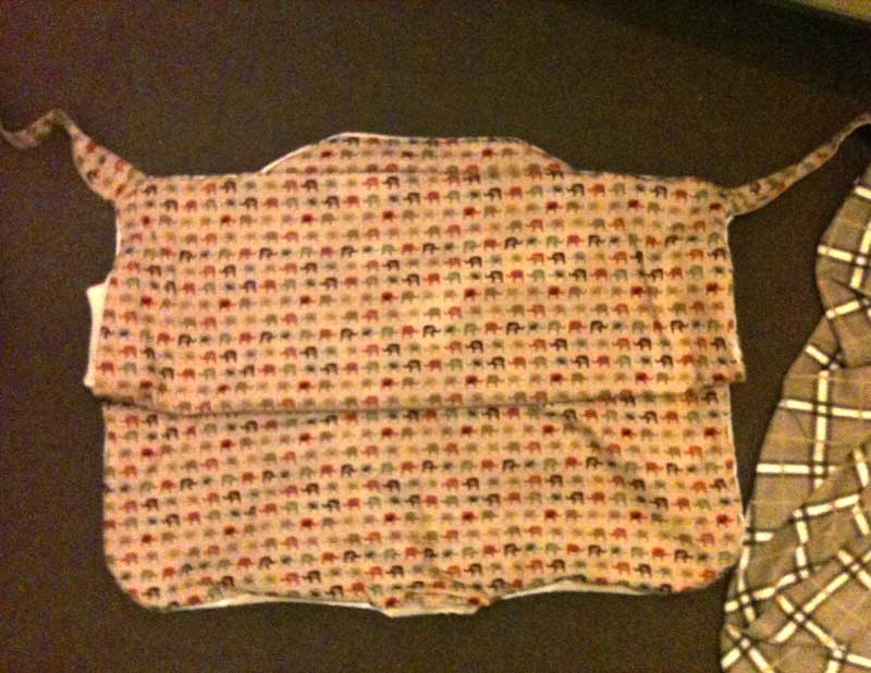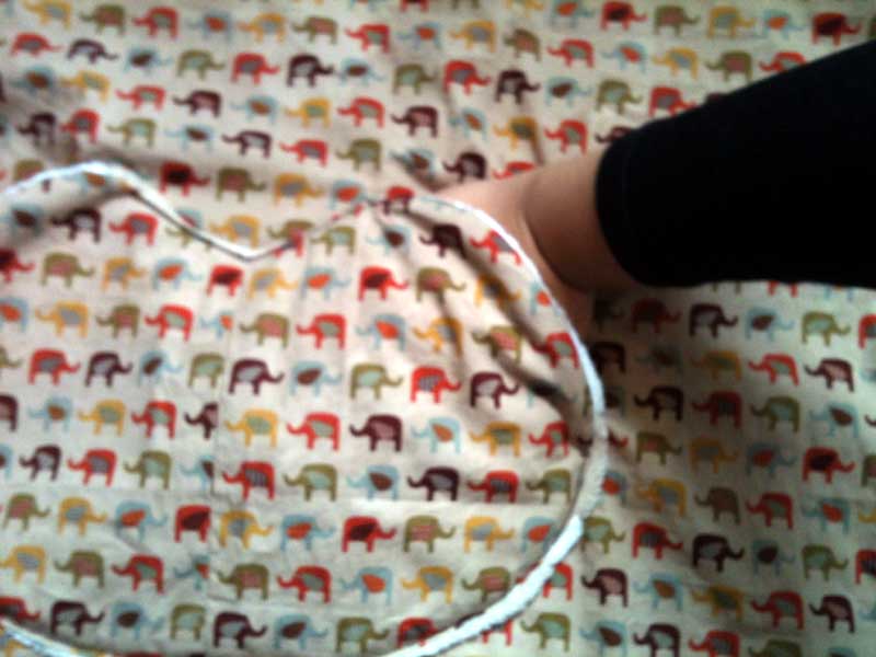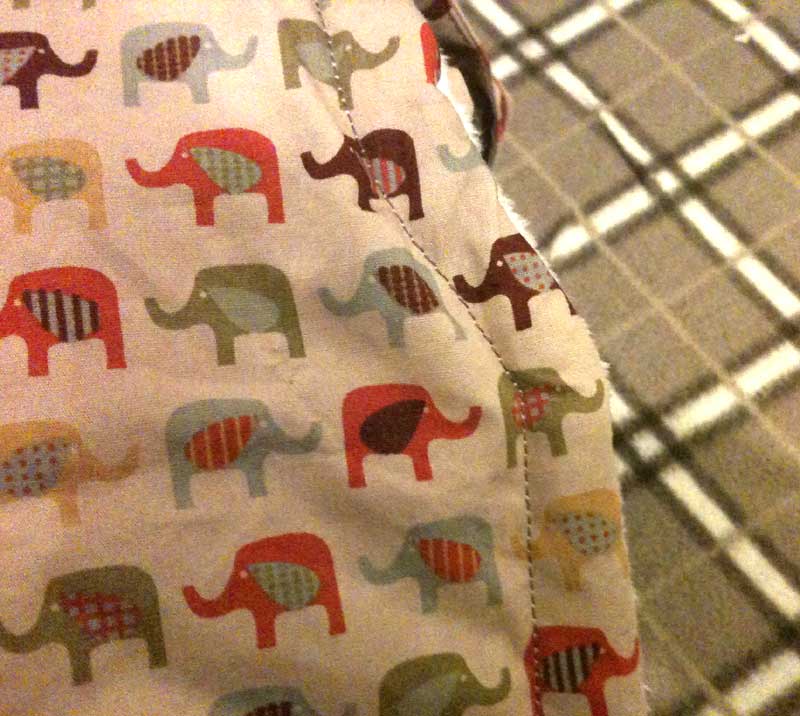 ☆私は赤ちゃんが寝んねの時にもこのカバーを使うかもしれないので顔にカバーが被さっても大丈夫なように防水にはしませんでしたが、防水にしたい人はナイロン地で防水カバーにできます。表布がナイロン地で気にいるのが無い場合は、気にいった薄手の表地と裏地の間にベビーベッド用などの薄手の防水シーツを挟んで縫うと一応防水になります。(イギリスだとwater proof/water resistant bed coverで5ポンド以下で売ってます)