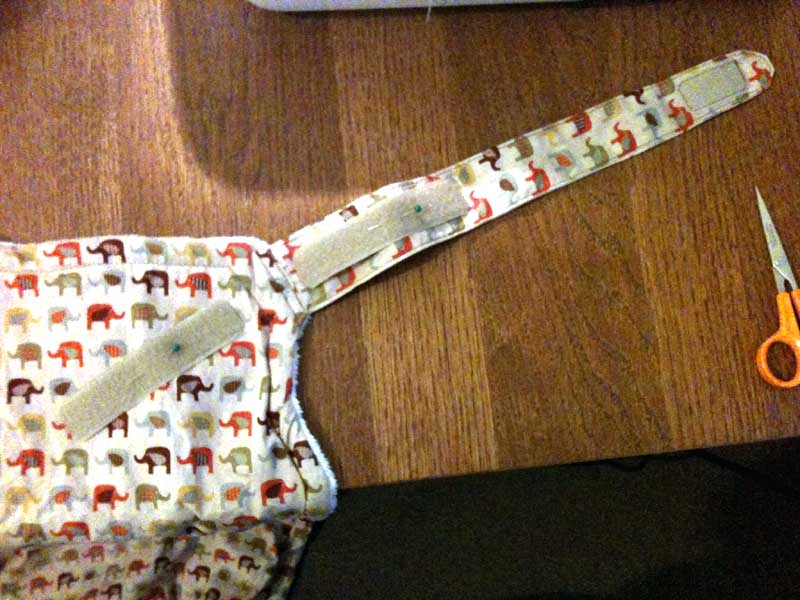 ⑮肩ヒモにマジックテープをつける。