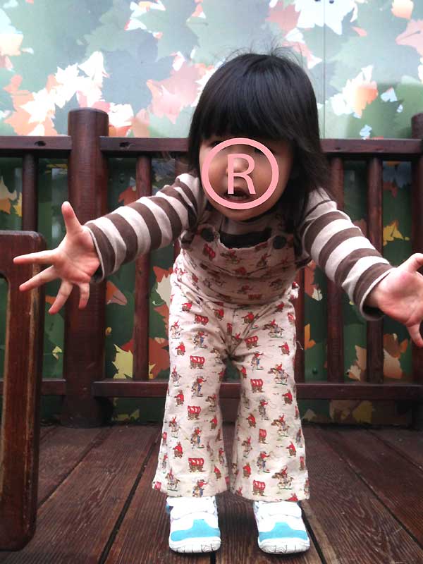 前に作ったオーバーオールが小さくなったのでカウボーイ柄をコーヒーで染めてから作りました。