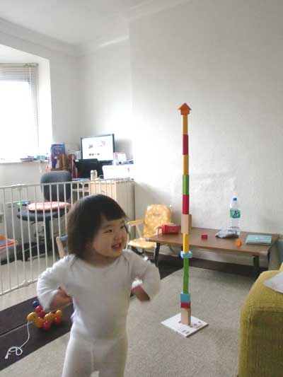 でも、自分の限界を超えた高さにまで積まれた積み木を見てハナさんとっても自慢げ。