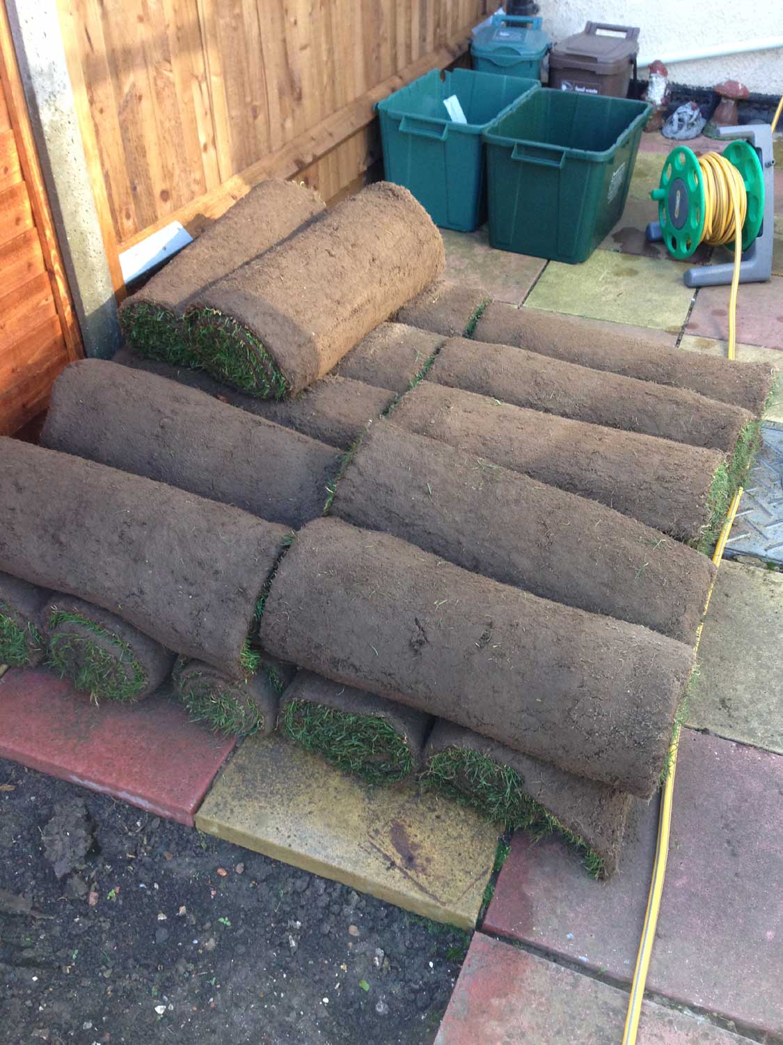 芝生引くのは届いた当日、遅くとも翌日出ないといけないので芝生引く日は天気が良くて次の日に雨の予報の日を考えて配達してもらいます。