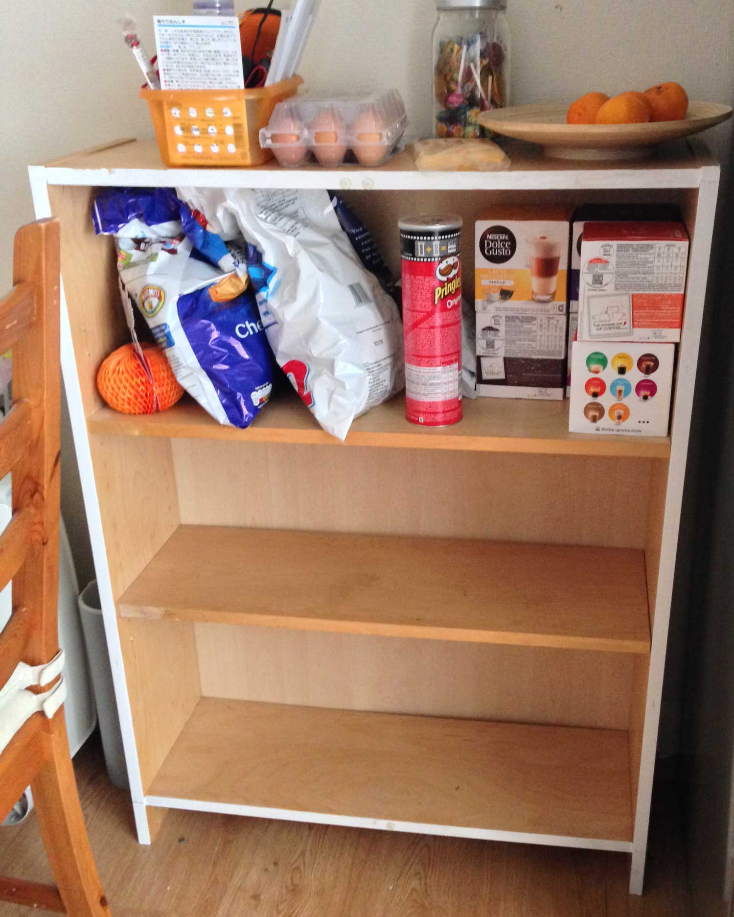 いらなくなった本棚があるので捨てようと思ったけど、子供のコート掛けがないので不便なことに気づき写真のIkeaの本棚をリメイクすることに決定。