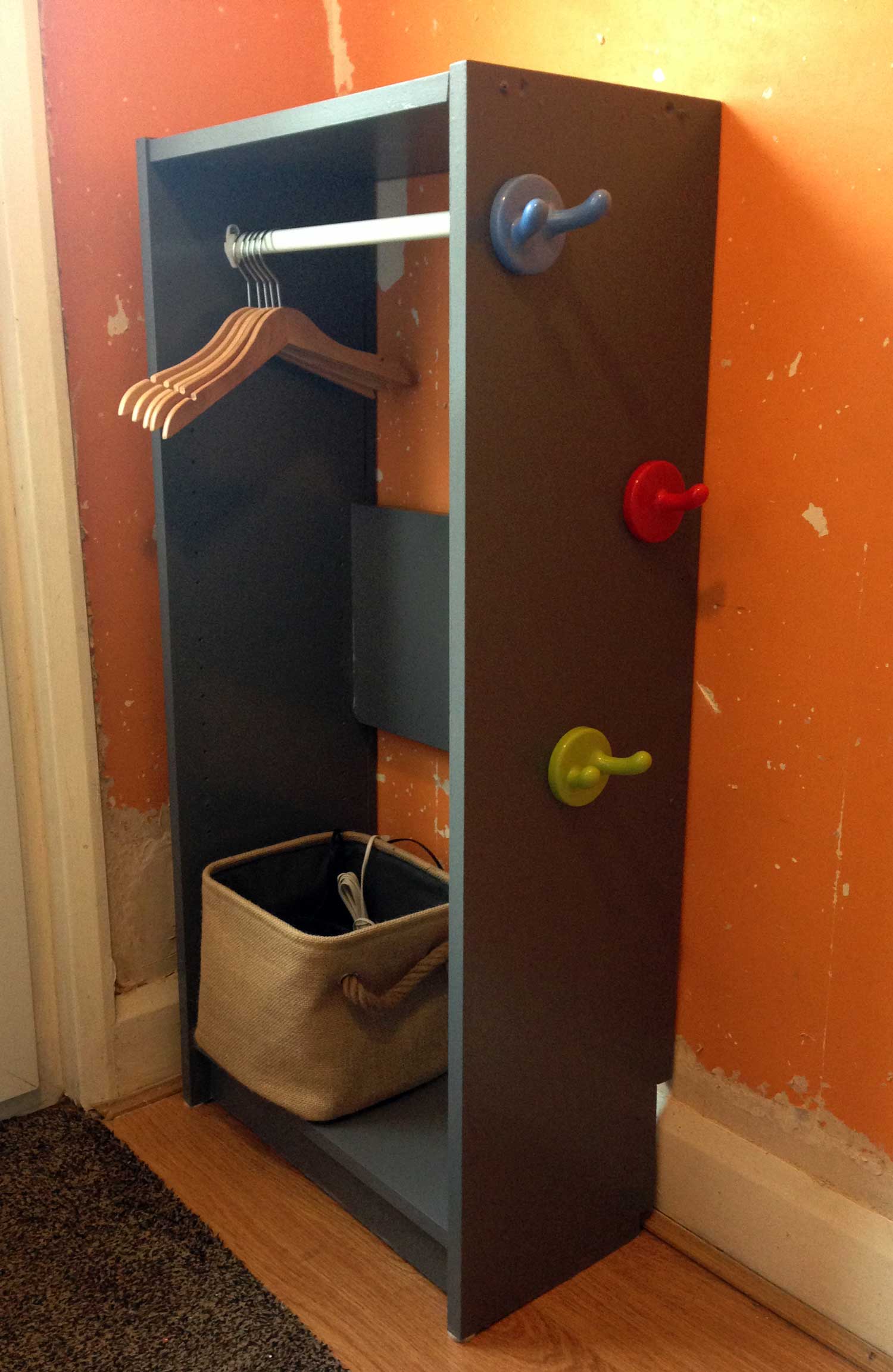 いらない家具がない人はIKEAで子供用の棚買ってポールを取りつけた方が安価で楽ちん。